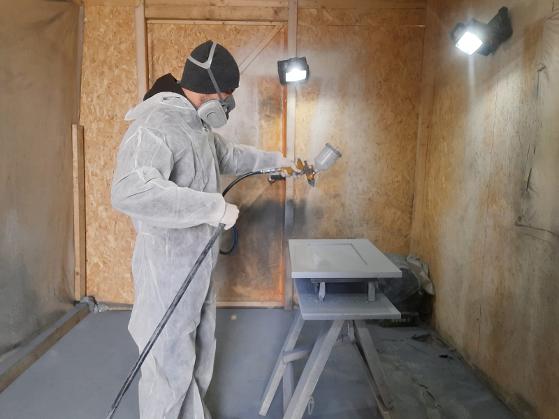 Spraying is the highest-quality painting method available for wooden and PVC surfaces, with the smoothest and most homogeneous finish, completely different from the streaking brush and dripping roll.