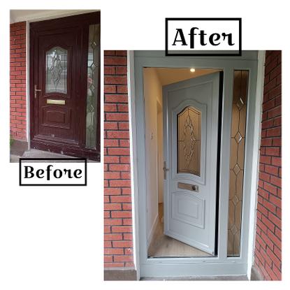We know that usually changing your front door is probably one of the most expensive quotes, but if you decide to just have it sprayed, it would be way cheaper (in average 1/10) and faster, as you wouldn't need to wait for long delivery and fitting times.